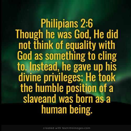 Philipians 2:6 Though he was God, He did not think of equality with God as something to cling to. 7Instead,