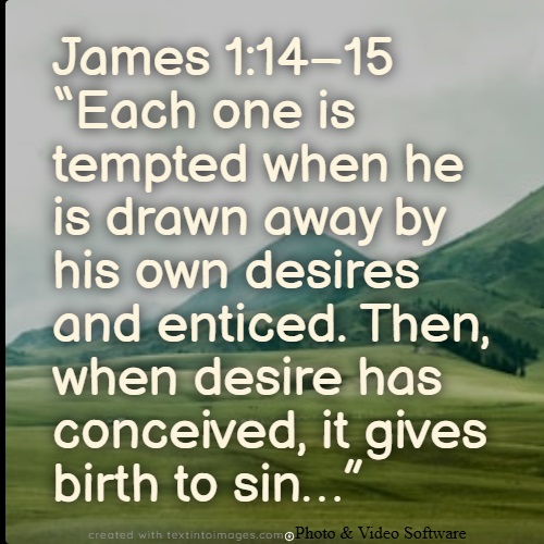 James 1:14–15 “Each one is tempted when he is drawn away by his own desires and enticed. Then, when desire