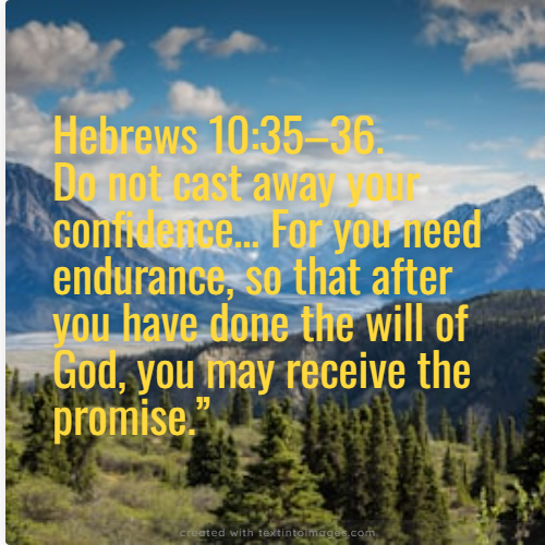 Confidence Hebrews 10:35–36 “Do not cast away your confidence… For you need endurance, so that after you have done the