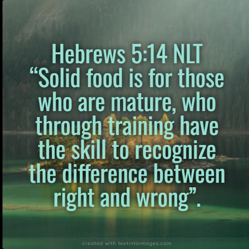 Hebrews 5:14 NLT “Solid food is for those who are mature, who through training have the skill to recognize the