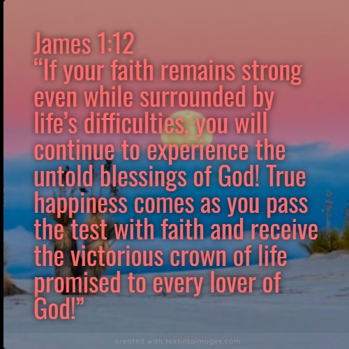 James 1:12 (TPT “If your faith remains strong even while surrounded by life’s difficulties, you will continue to experience the